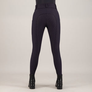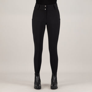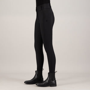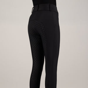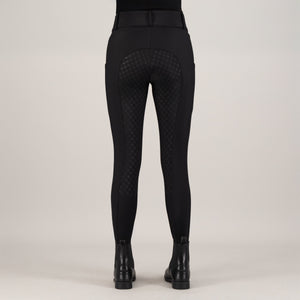Step into the spotlight with the IRH-Bilou FullGrip Riding Breeches, blending glamorous design with ultimate riding performance. These breeches are crafted from ultra-soft shell fabric that caresses your skin, offering unrivalled comfort and freedom of movement for dressage practice, training, or leisure rides. The wide waistband, accented with two elegant gun-metal branded buttons, creates a flattering silhouette and secure fit, while practical phone pockets on both sides keep your essentials within easy reach. Finished with a dazzling rhinestone logo detail on the left pocket and a colour-matching silicon full seat, you will feel confident and stylish every time you ride.