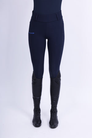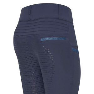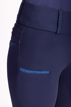 Achieve the ultimate style and comfort in our high waist riding tights. Made with stretch fabric, these tights are perfect for all your equestrian adventures. The water repellent and quick-dry features keep you dry in any weather. Keep your phone secure in the phone pocket with glitter detail, while the fake back pockets add a touch of glam. The rhinestone embellished belt loops and pin tuck detail at the back yoke offer a chic look. Complete with a logo rhinestone detail and silicon fullseat for extra grip, these riding tights are a must-have for any rider. Upgrade your riding wardrobe with our high waist riding tights today!