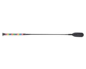 Jumping whip Ombre has a striking appearance due to the ombre coloured handle. The different colours provide a cheerful touch. The whip is finished with a black metal knob for a good hold in the hand.