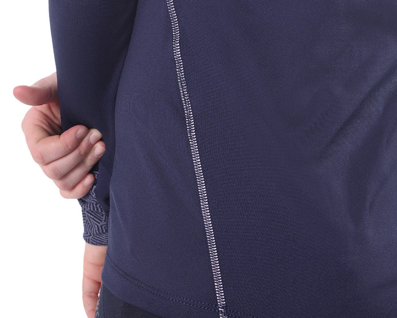 Thermoshirt Loua is the ideal training shirt for the winter. The inside has a special print that regulates body heat and keeps you warm on cold days. This print also emerges at the sleeve ends. These sleeve ends and the reflective stripe in the side seams give the shirt a sporty look.