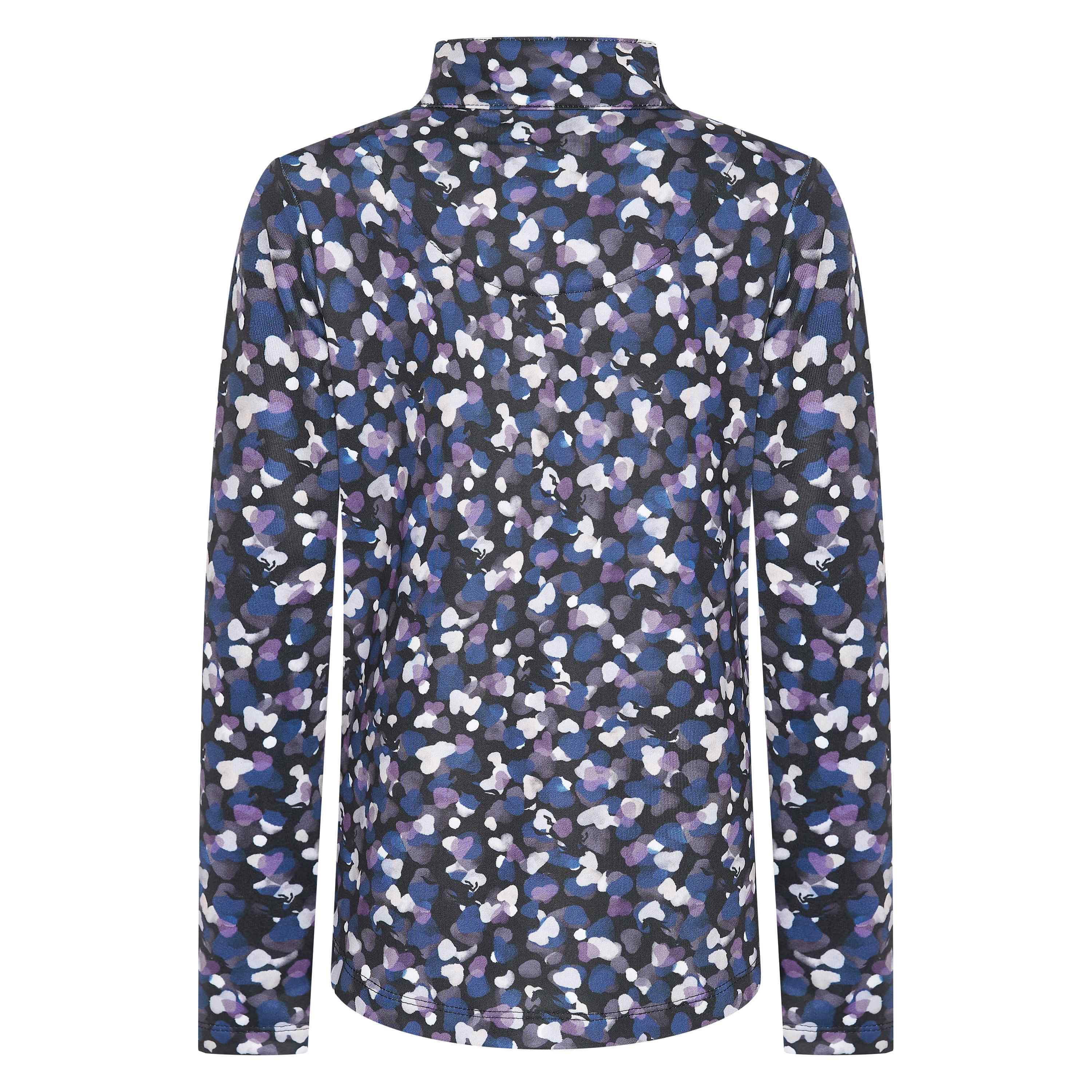 Elevate your activewear with our latest jersey half zip top! This stylish piece features a trendy allover print and shimmering glitter detail along the zipper for a touch of glamour. The long sleeves and convenient chin protector provide extra coverage and warmth, while the glittery artwork at the chest adds a fun and fashionable twist. Stay comfortable and stylish during your workouts or everyday activities with this must-have top.