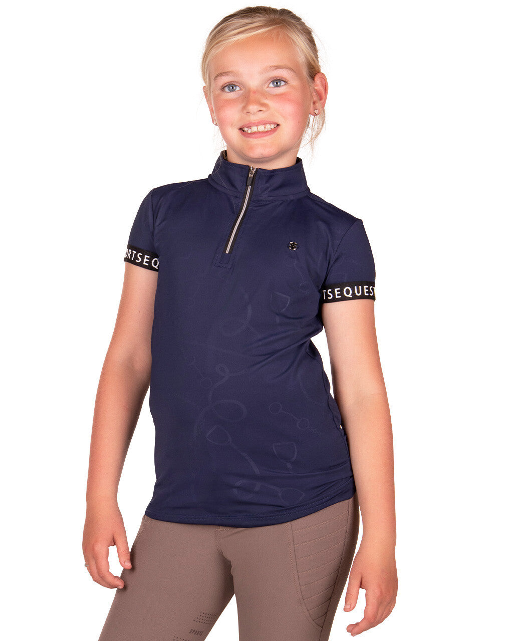 Feel good in what you wear! This Jolien base layer has a striking stylish print and is finished with an "Equestrian Sports" print at the ends of the sleeves. Match the Jolien with the rest of the summer collection and you are ready to go to the stable!
