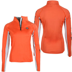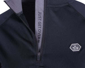 This sportshirt is perfect for wearing during training or competitions, because of the very breathable fabric. The upper arms are decorated with a star print in a contrasting colour. The shirt is decorated with a fun "Just get over it" text print behind the zipper closure.