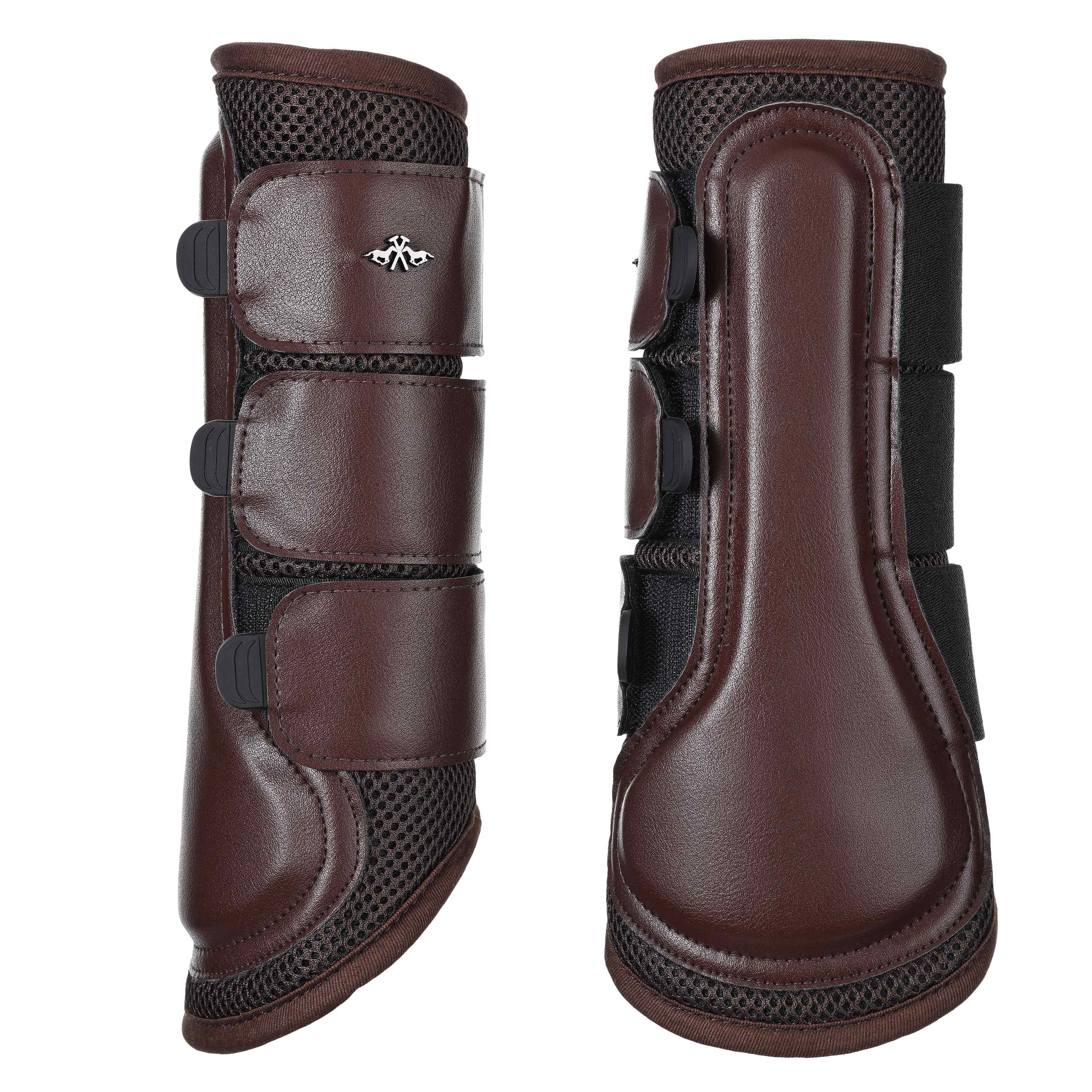 These brushing boots are crafted from breathable mesh material to ensure optimal air circulation, preventing your horse's legs from overheating during activity. They feature a protective PU layer designed to shield against impacts while preventing rubbing and irritation. Lightweight yet durable, these boots provide superior comfort and protection, ideal for both training and turnout.