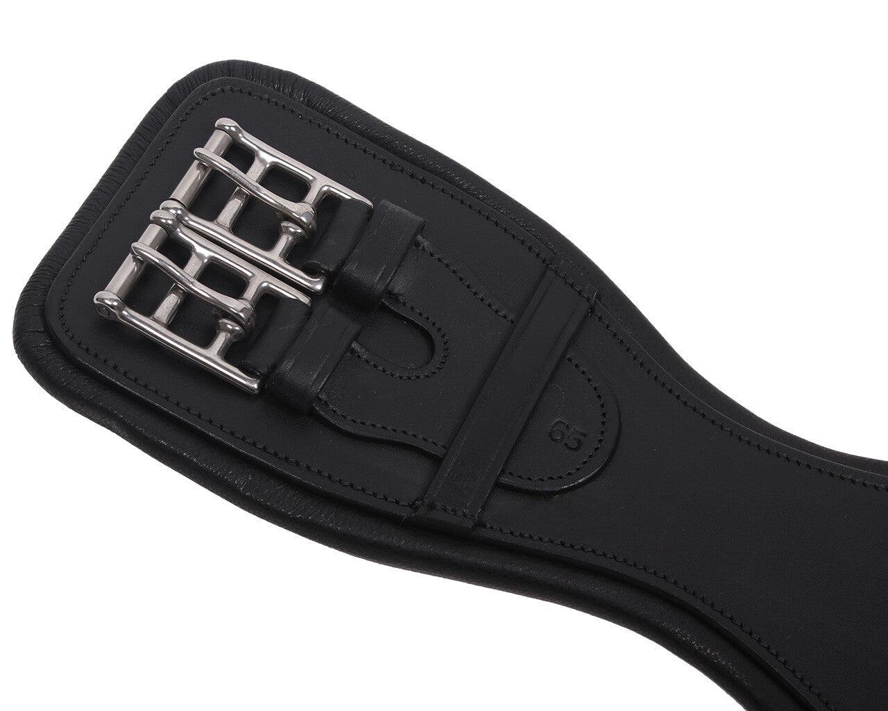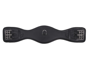 Anatomically shaped dressage girth with a soft padding. The shape of the girth provides more freedom of movement and improves performance. The pressure is divided more evenly because of the wide part in the middle. The girth features one ring in the middle for the attachment of auxiliary reins.