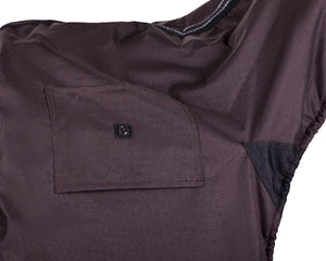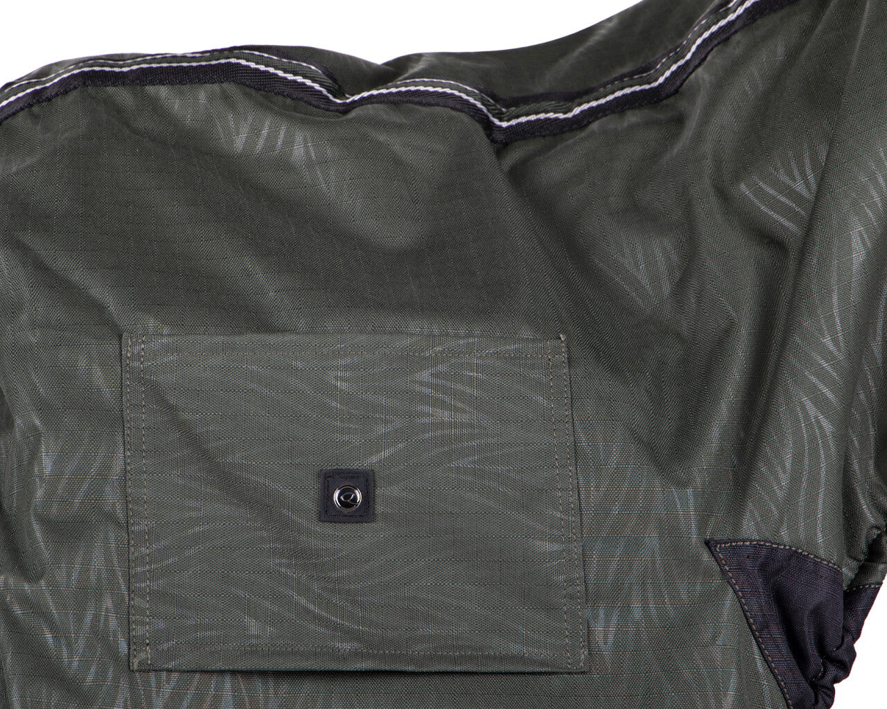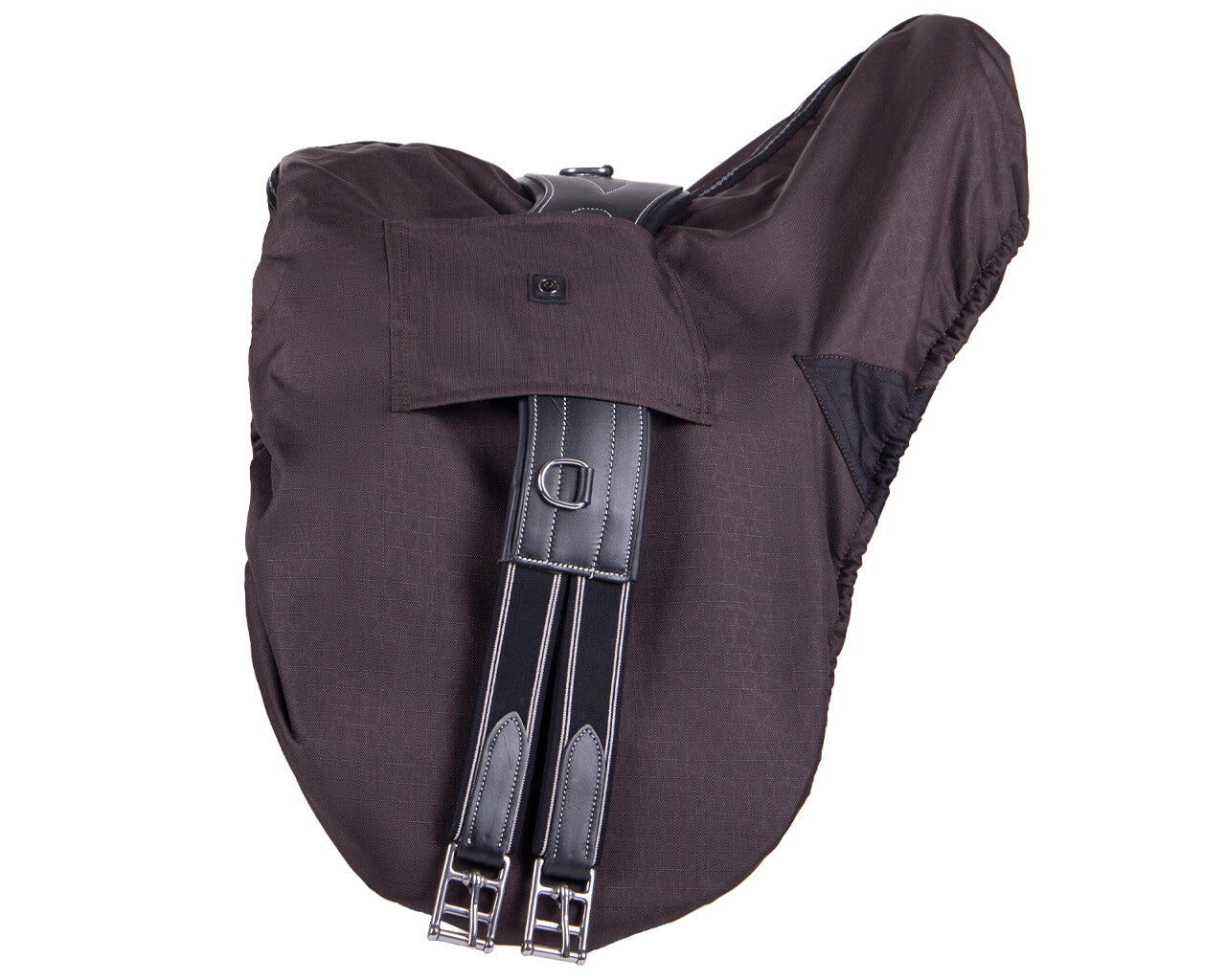 Water-repellent saddle cover made of turnout fabric with a fleece lining. Because of the large size the cover will fit nearly every English saddle. With the cord the cover can be adjusted to the size of your saddle. The cover features two loops in which the girth can be placed.