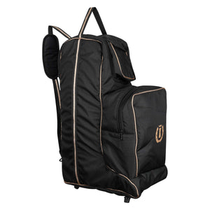 Hey rider, ready to make a statement even before you saddle up? The IRH-Classic Boots and Helmet Bag isn't just any ordinary gear carrier; it's your trusty companion for keeping your equestrian essentials looking sharp and protected. Designed for the rider who values both practicality and panache, this brilliant bag ensures your beloved riding boots and precious helmet are always kept safe and sound, whether you're heading to the stables for a dressage lesson, a jumping competition, or just a leisurely hack. It’s all about bringing that Imperial Riding flair to every part of your equestrian life, combining bold functionality with undeniable style. Plus, with a dedicated extra pocket for your spurs, you'll never have to rummage around again – talk about making life easier and more glamorous!