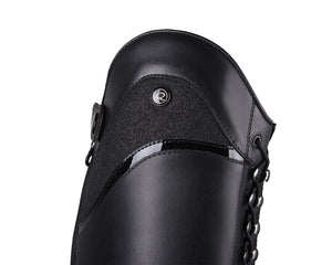 Riding boot Hailey is a real eye-catcher in the ring. The top of the boot is decorated with patent leather and glitter. The decorative lacing makes for a striking look, but the zip makes it easy to put on. The elasticated lace, elastic insert and comfortable insole ensure high wearing comfort.