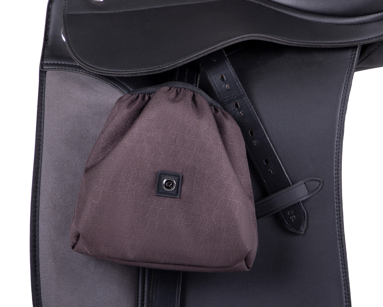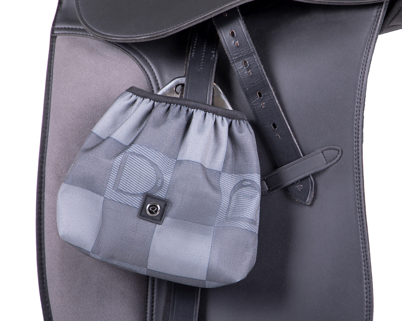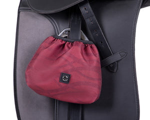 Stirrup covers made of turnout fabric. These covers protect the saddle from scratching and dirt from the stirrups. Because of the elastic top the covers are easy to attach.