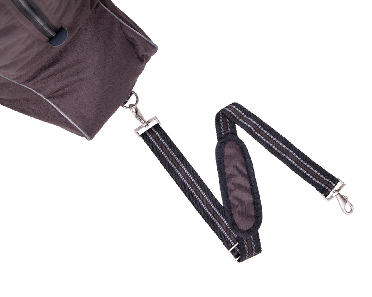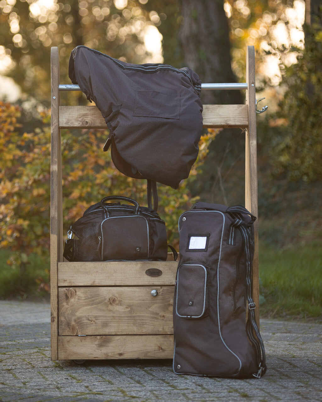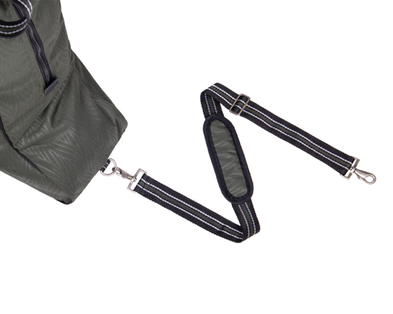 Striking protection for your boots, made of water-repellent turnout fabric. This boot bag features small vents for the drainage of moisture. Equipped with a removable shoulder strap, handles, zipper pocket and name card slot.