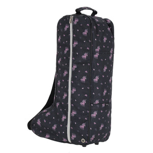 Boot bag from the Lize collection to safely store your boots. The bag features a handle, an adjustable shoulder strap and a divider to protect your boots. Equipped with zippers on both sides, ventilation holes and a pocket with hook-and-loop fastener. Finished with a loop featuring the QHP-logo and rubber feet at the bottom.