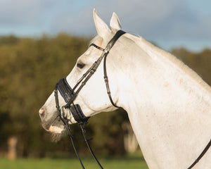 Make your bridle a real eye-catcher. This pad with a light metallic sheen is decorated with a glitter tape that extends above the noseband. The pad can be placed under the...