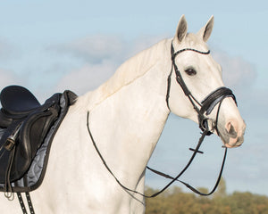 Make your bridle a real eye-catcher. This pad with a light metallic sheen is decorated with a glitter tape that extends above the noseband. The pad can be placed on top...