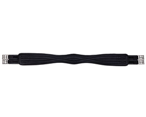 Fine black all purpose girth made of strong material. Because the girth is anatomically shaped it provides more comfort and freedom of movement. The girth has a ring in the middle for attaching an training aid.