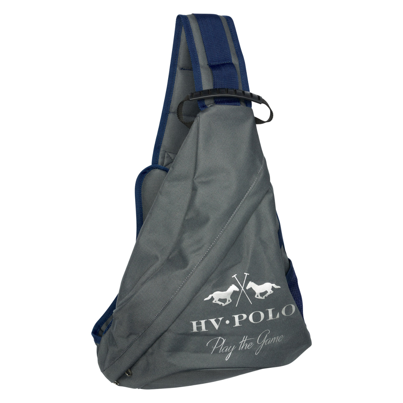Triangle shaped backpack which you can wear over one shoulder on your back. With several pockets to store all of your stuff. With brand foil print at front.