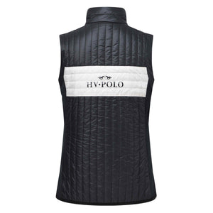 Light weight quilted bodywarmer * Soft shell side panels for comfort stretch * Fake down light weight padding * HV Polo and Horses Logo printed on back pannel * 2 way closure at front * 2 blind zipped front pockets * HV Polo logo embroidered on chest, wearers left * Elastic binding at bottom for perfect fit