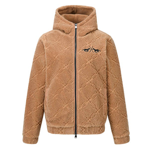 Warm teddy jacket with chain pattern * Big hood lined with solid teddy * Loose fit * 2-Way zipper closure at front * HV Polo Logo embroidered enlarged on chest, wearers...