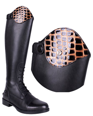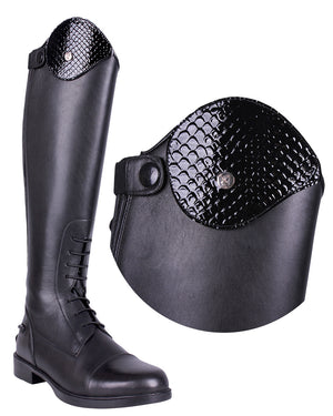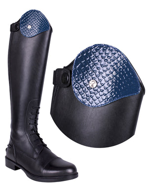 Exchangeable top for the riding boot Romy. Made of patent leather with a crocodile leather pattern.