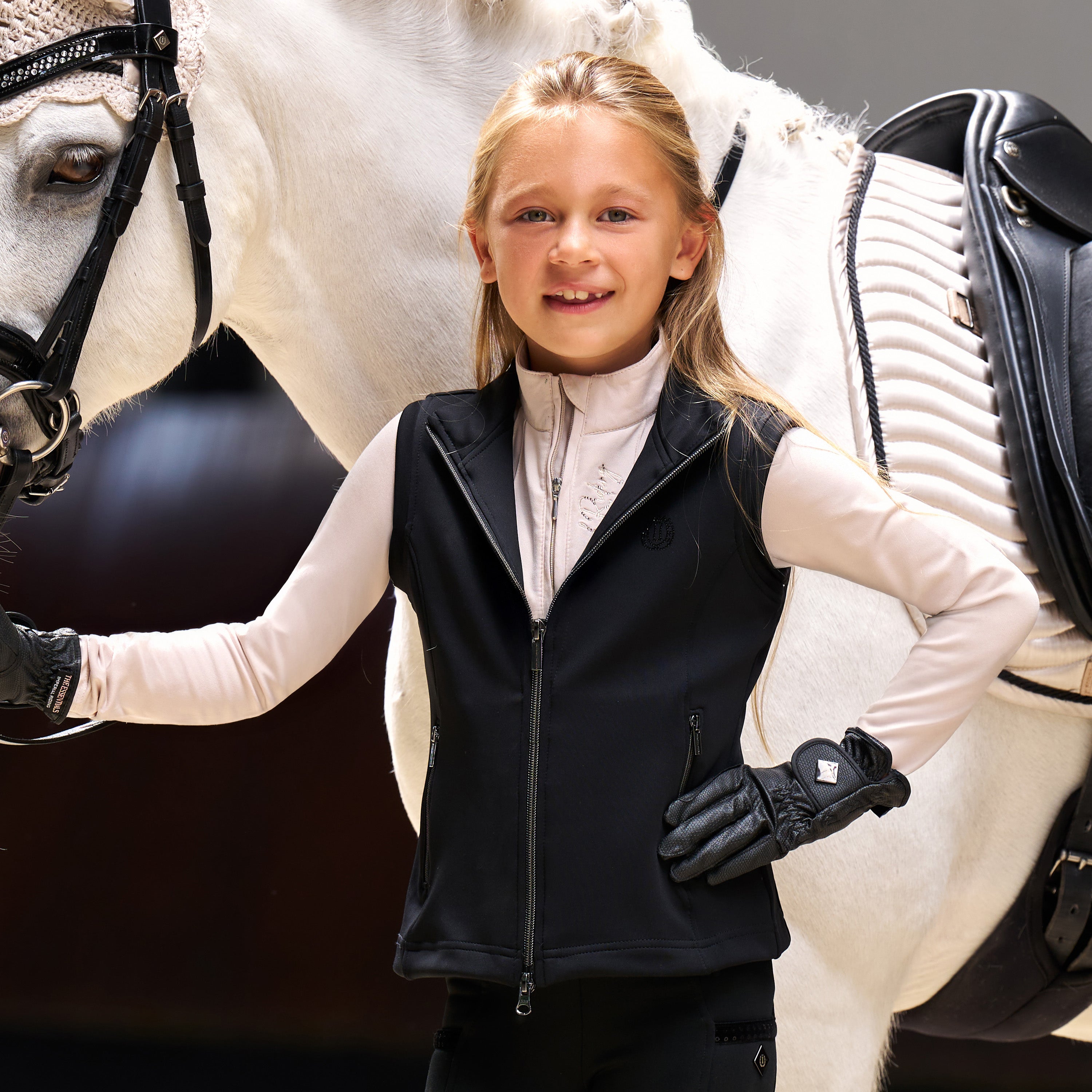 Turn every stable visit into a dazzling affair with the IRH-Cybil Bodywarmer. Expertly crafted for riders who live boldly and fashionably, this bodywarmer radiates glamour with sparkling rhinestone detailing and sophisticated embroidery. Its practical two-way zipper offers maximum versatility for freedom of movement while riding or performing tasks around the yard. Elegant and tailored, the IRH-Cybil beautifully balances fashionable flair with essential equestrian functionality.
