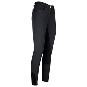 Chic, feminine breeches with beautiful glitter accents. The classic four-pocket style of the El Capone breeches offers the perfect comfort whilst riding and are a true eye catcher. The rhinestones and glitter applications embellish the front and back pockets, belt loops and our Imperial Riding logo. The leg ends are elastic and made with color-matching textile. Not only do these breeches have a great stretch, but are also water- and dirt-repellent. Available in Full-Grip Silicone, Full-Seat with vegan leather & Knee-Grip Silicone.