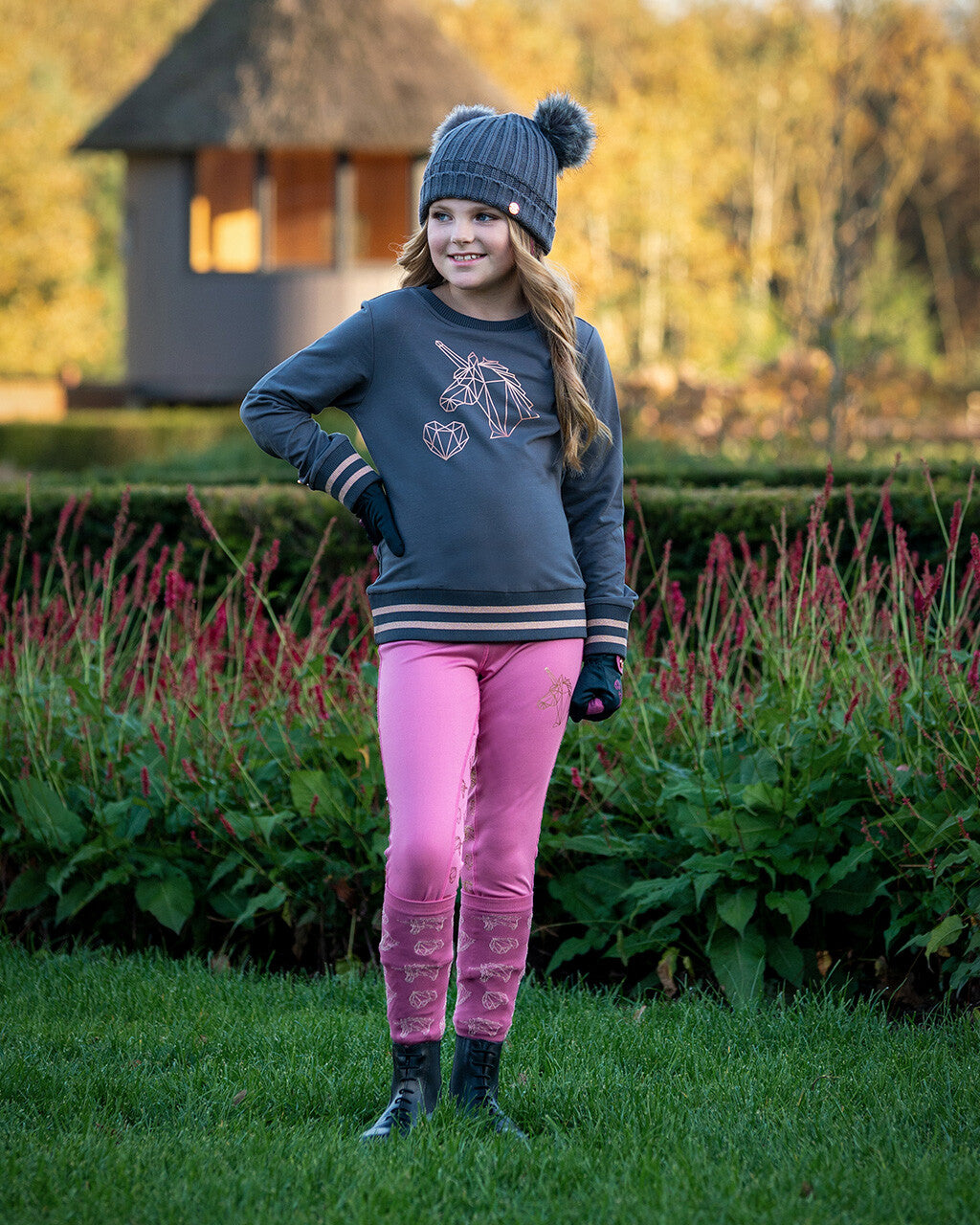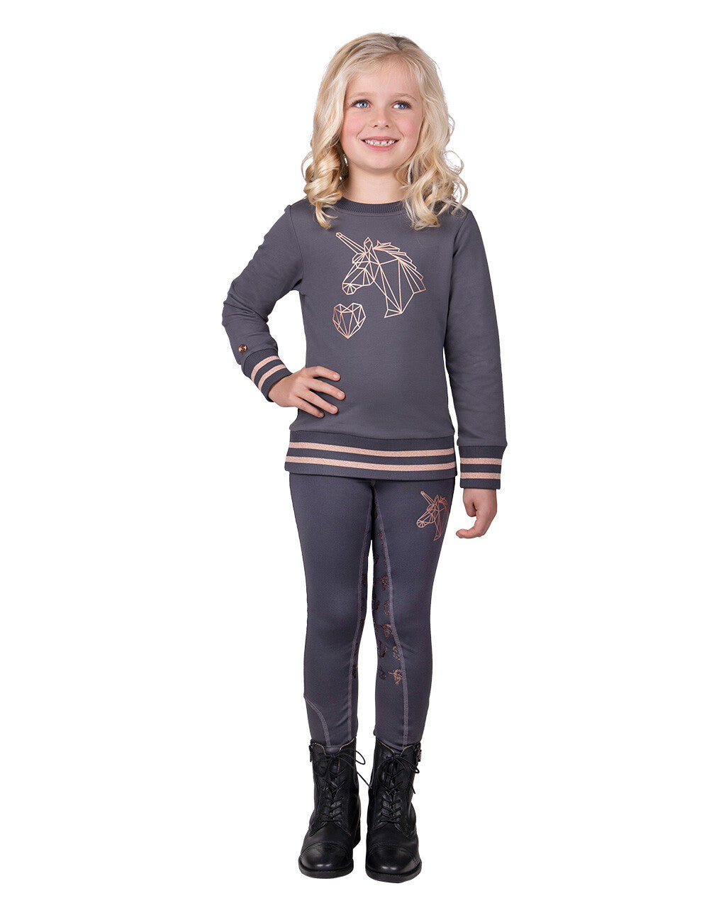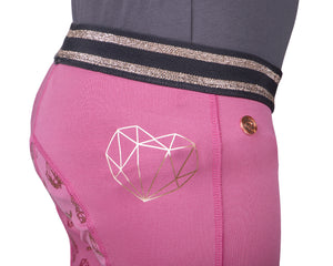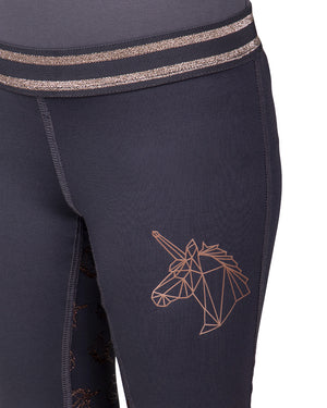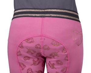 Shop around! The riding tights Didy junior are indispensable in your wardrobe. The tights are brushed inside to keep you warm. The glitter waistband and unicorn print on the left side are fantastic, right? The glitter anti-slip seat in the shape of unicorns gives the breeches an extra cute touch.