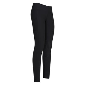Upgrade your riding experience with our new Riding Tights. Made with a rib jersey fabric and featuring a high waist with a comfortable waistband, these tights will keep you looking stylish and feeling secure in the saddle. The silicon knee grip ensures you have optimal control while riding, while the two phone pockets make it easy to stay connected on the go. Our signature logo print adds a touch of elegance, with an additional logo at the back waist for extra flair. Plus, our unique booty booster design will have you feeling confident and comfortable all ride long. Try our Riding Tights today and elevate your equestrian style.