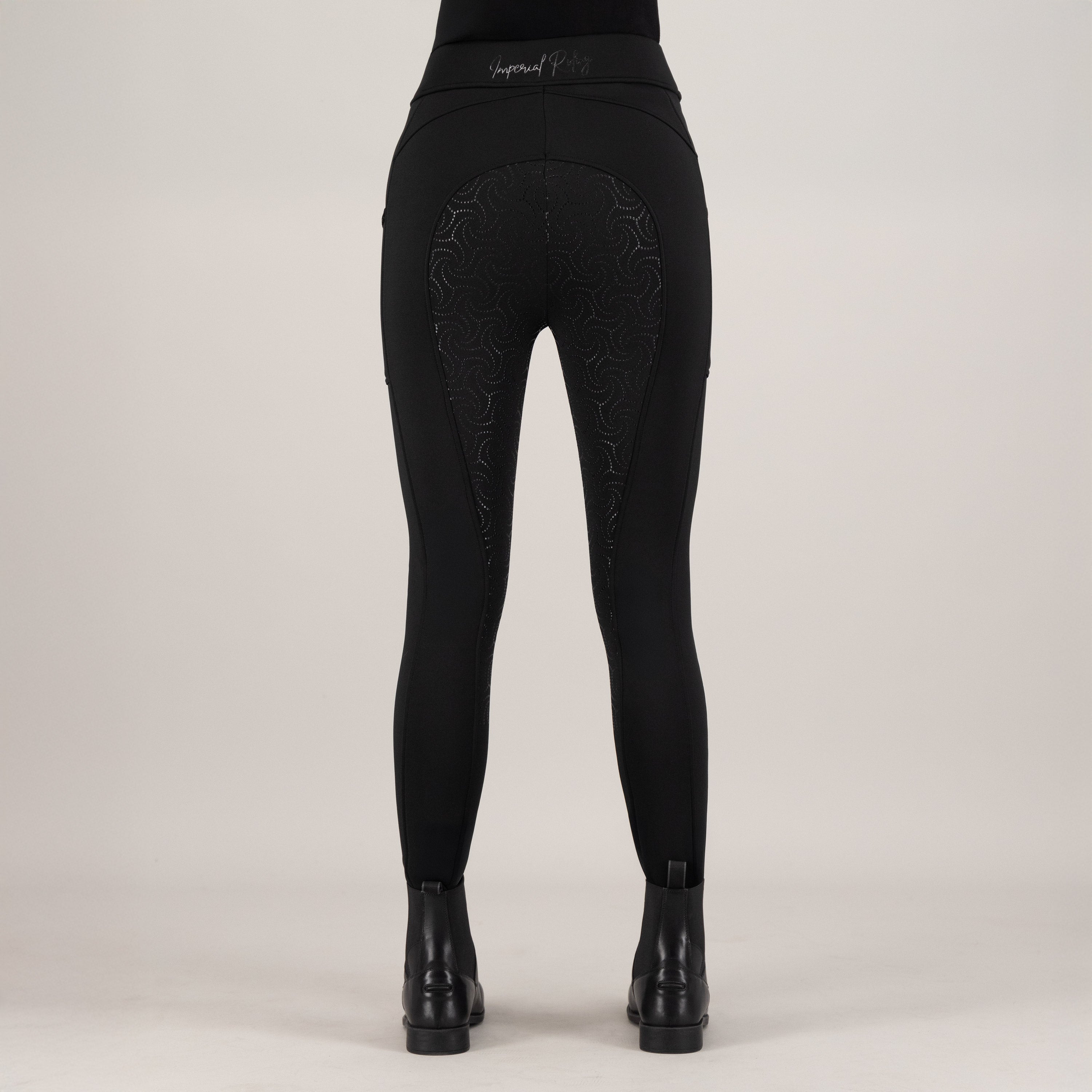 Imagine slipping into these incredibly soft tights – they're brushed inside, so you'll stay wonderfully warm even on cooler days, making every ride a delight. The fancy silicone full grip ensures you've got amazing stability in the saddle, whether you're schooling dressage or hitting the jumping arena. And let's talk about the details! With phone pockets on both sides, adorned with a chic velvet tape and dazzling sequins, your essentials are always within reach, adding a touch of glamour to your equestrian look. The high waistband, featuring a colour-matched IMPERIAL RIDING print at the centre back, offers fantastic support and a flattering silhouette, all while stretchable seams ensure maximum freedom of movement. These aren't just riding tights; they're your statement piece for fun and confidence, perfect for the rider who loves to shine.