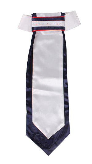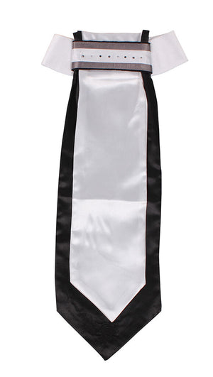Satin stock tie in tricolour scheme with a line of small rhinestones. Matching the Coco collection to match your outfit. The stock tie comes with a Hook-and-loop fastener, so it is easy to attach.