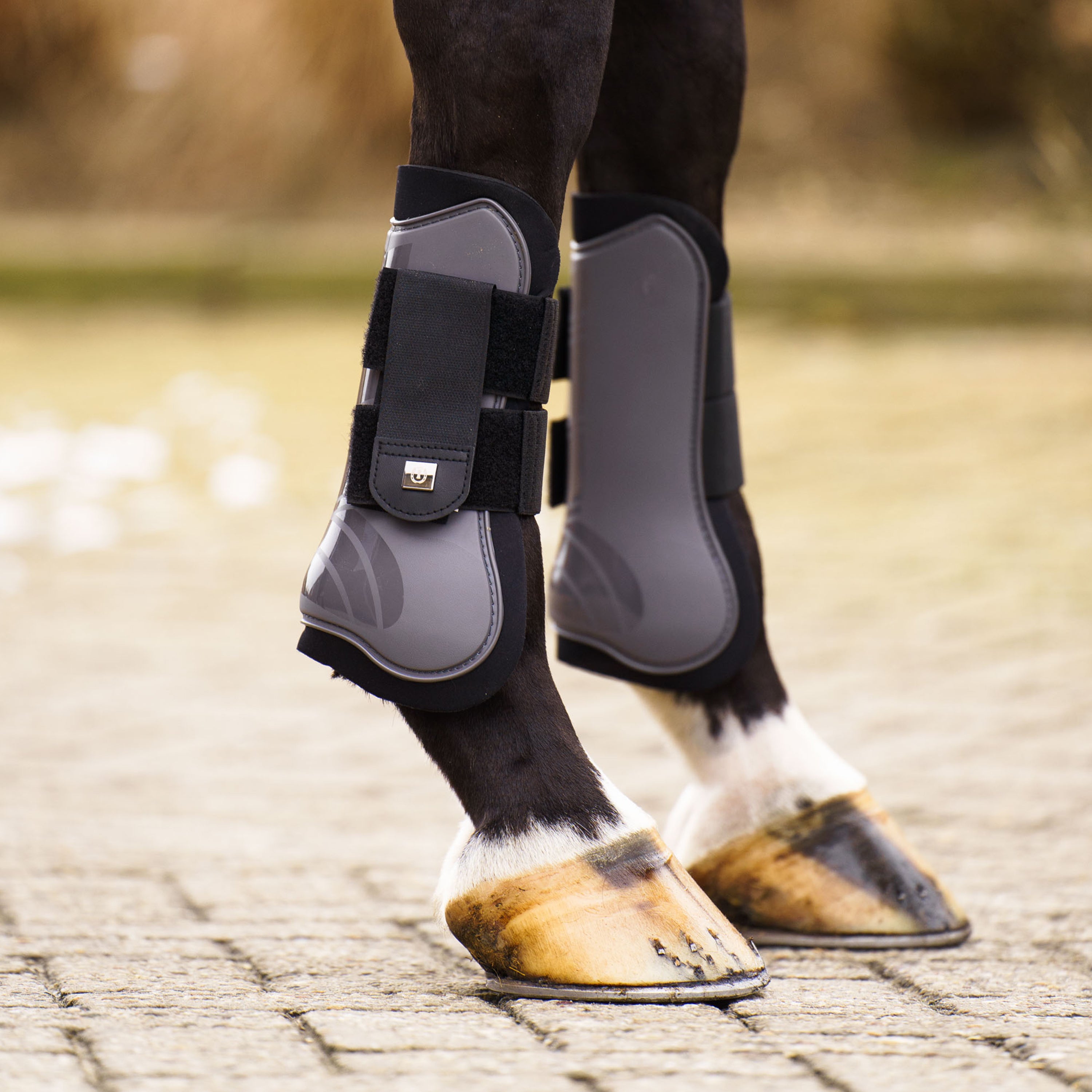 Ready to make a statement in the arena? Our IRH-Lovely Tendon Boots are here to ensure your horse not only performs at its best but also looks absolutely fabulous! Designed to perfectly match our IRH-Lovely Fetlock Boots, these tendon boots bring a touch of Imperial Riding's signature flair to your equestrian ensemble. We know you want your equine partner to be both safe and stylish, and that’s exactly what you get. With a robust TPU shell protecting the inside of your horse's legs and a soft, comfortable neoprene lining, these boots offer premium protection without sacrificing an ounce of glamour. And for that unmistakable Imperial Riding touch, a decorative coin adorns the closure, letting everyone know you're all about bold statements and top-tier gear. Get ready to turn heads and jump with confidence!