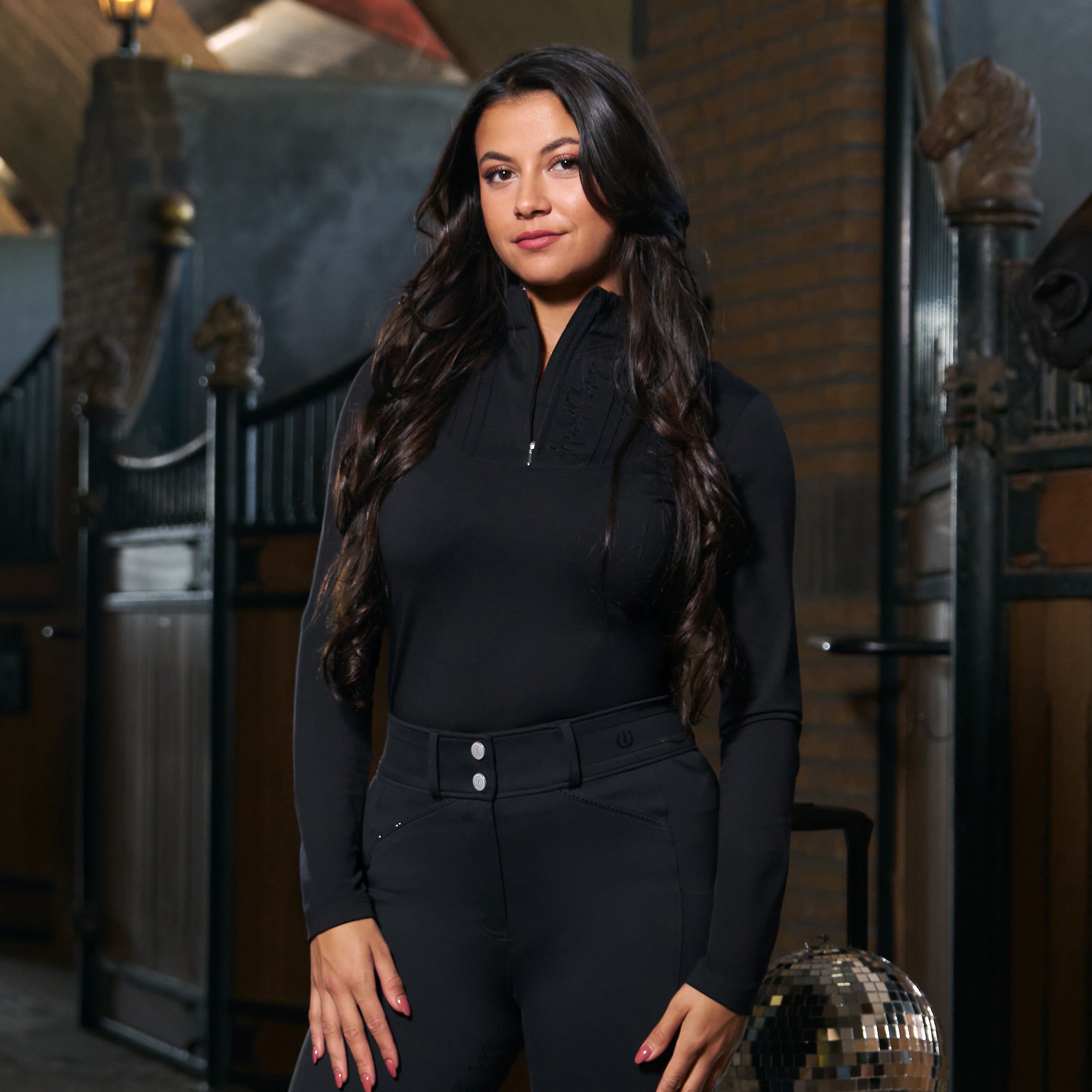Add a touch of glamour to your riding attire with the captivating IRH-Alinda Top. Designed for equestrians who love to stand out and feel fabulous, this sophisticated long-sleeved T-shirt combines individuality and style effortlessly. Crafted with a lightly brushed interior, it promises luxurious softness against your skin, keeping you comfortable at the stable or exploring beyond. The beautifully refined pintuck details and chic rhinestone-embellished Imperial Riding artwork offer an elegant, flattering appearance that ensures you turn heads wherever you go. Elevate your riding wardrobe and express your unique confidence with every wear.