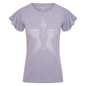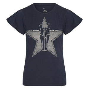 This chic top with an artwork full of rich Rhine stones will make you shine like a star. The Belle star top with horsehead in Rhine stones has special clock shape sleeves that will look even more beautiful while riding your horse.