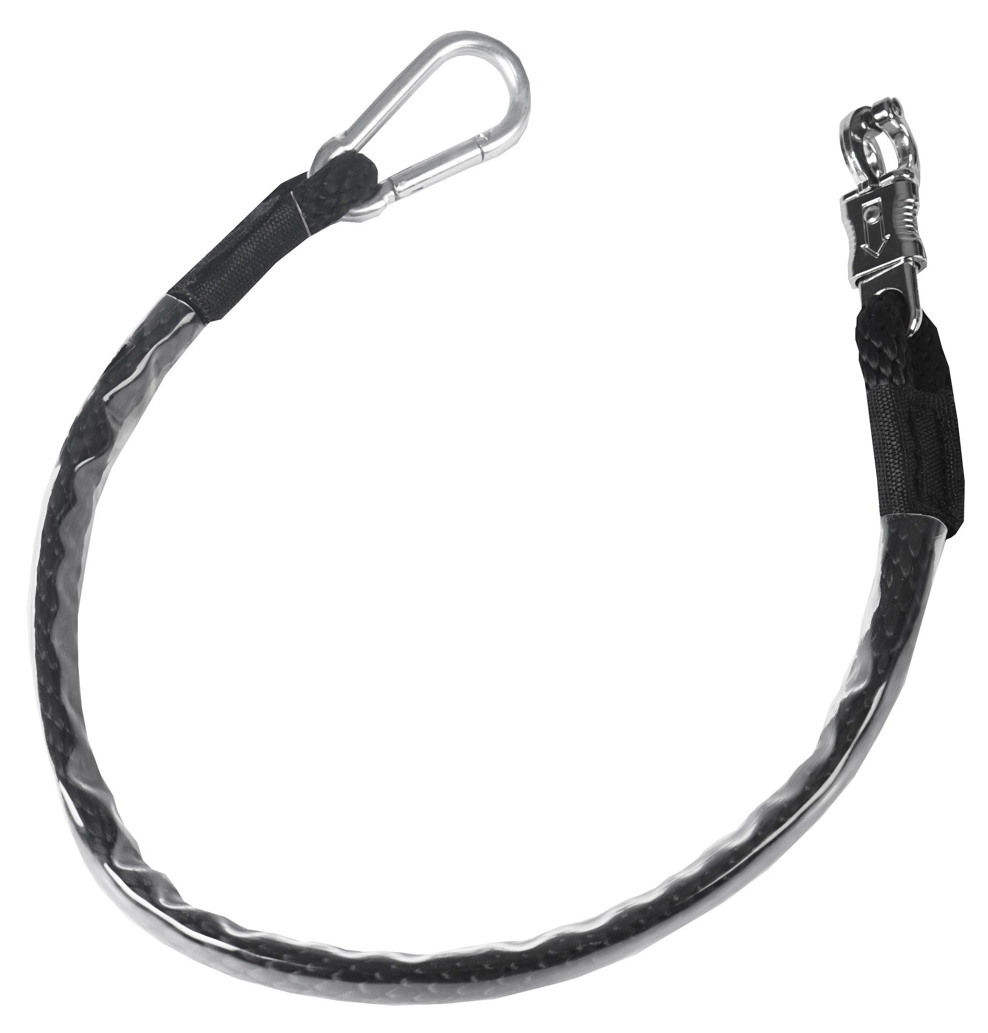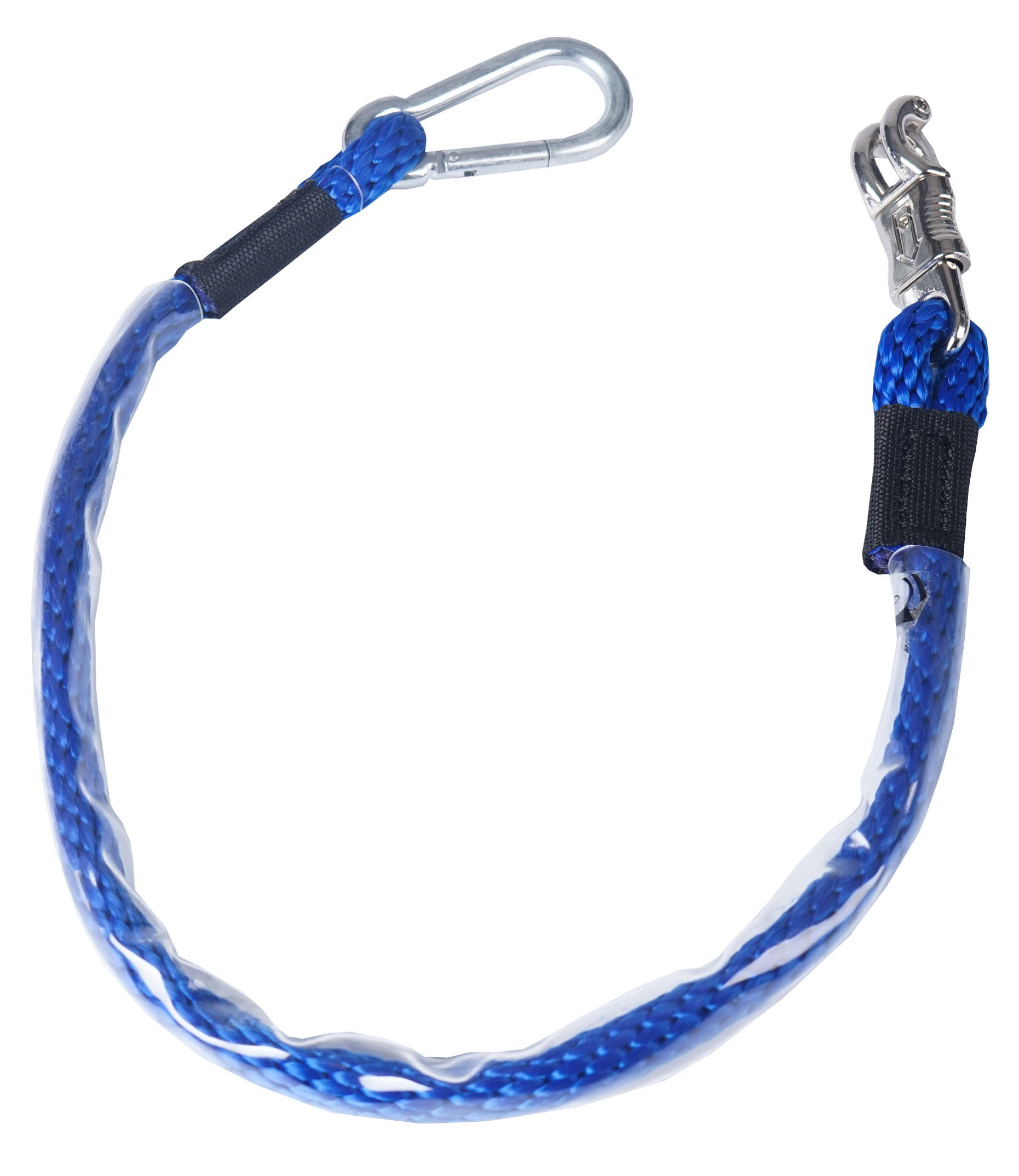 | This polyester line is covered with transparent PVC to reduce wear and has a spring hook and panic hook. Size: Total length (excluding hooks): 76cm. Total length (incl. Hooks): 90 cm. |