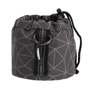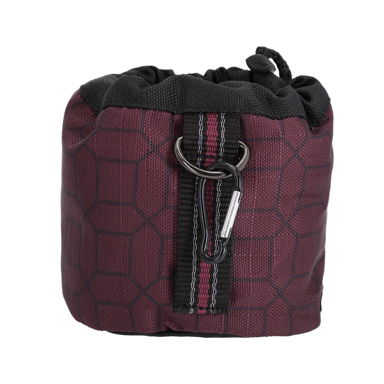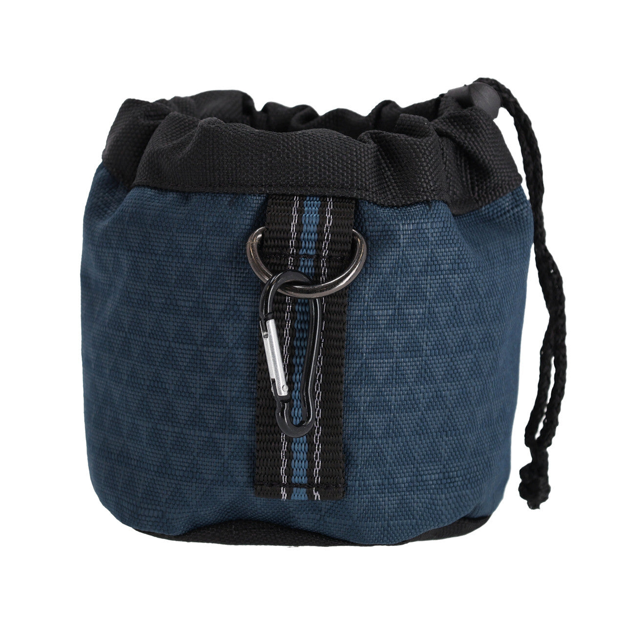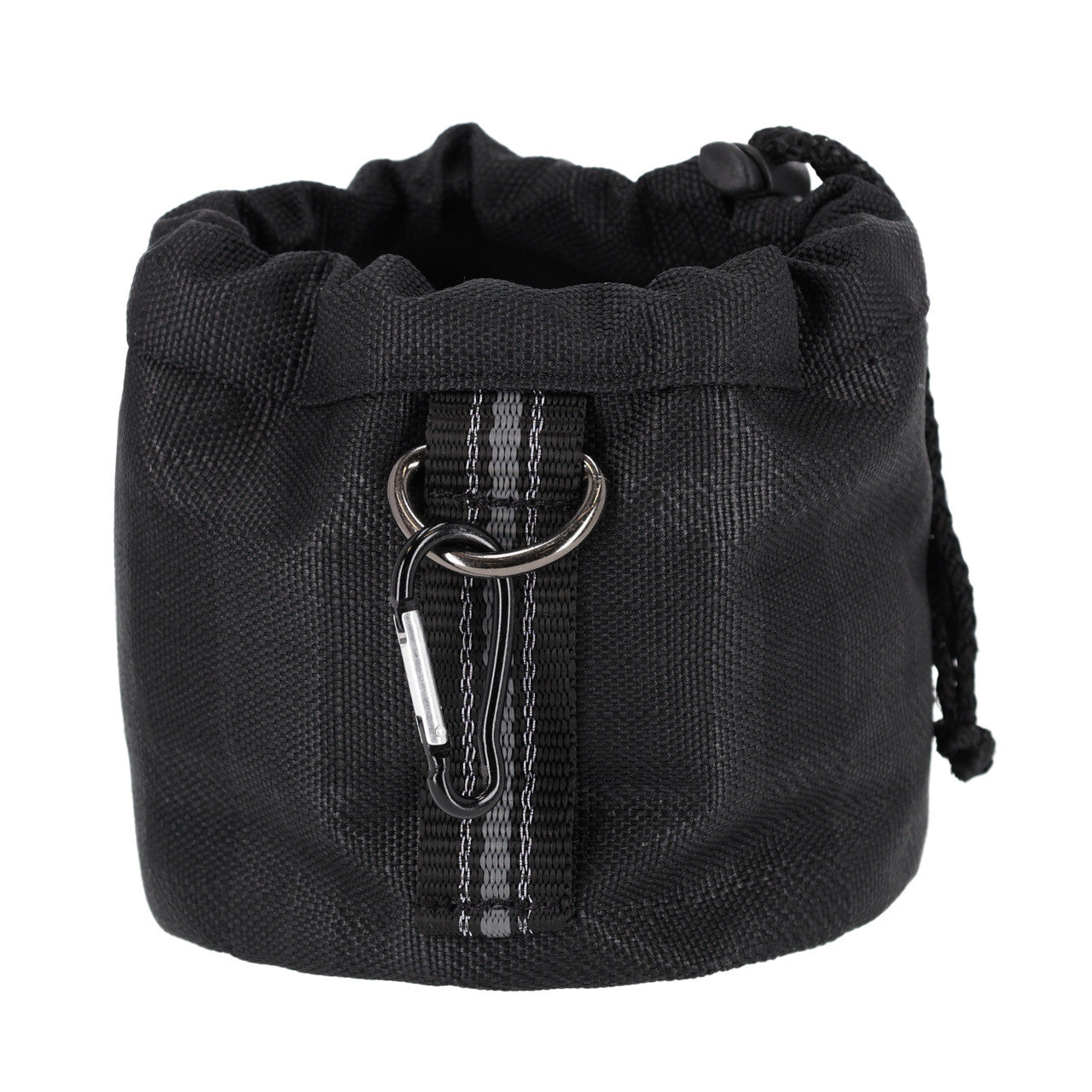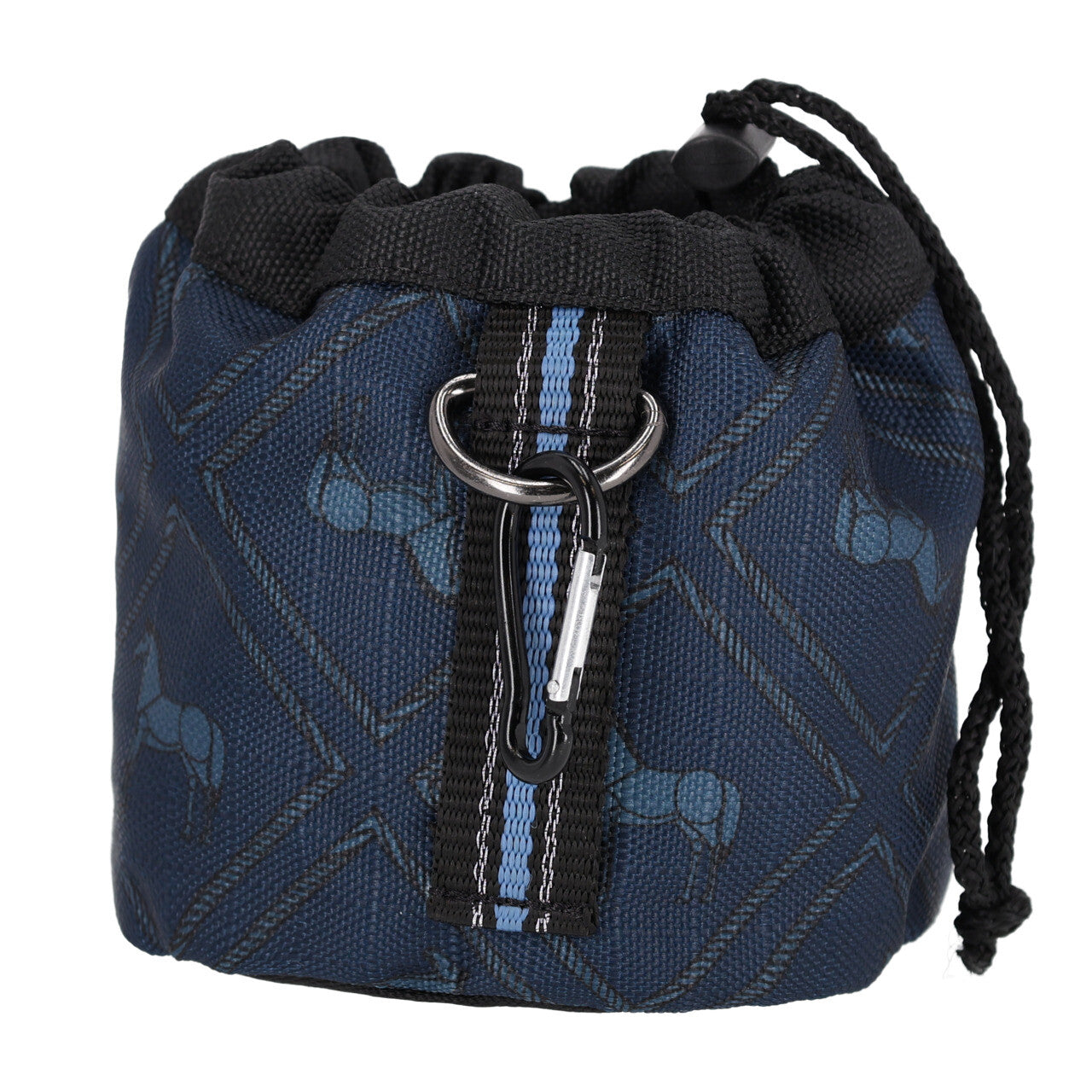 Treat bag for storing treats or other rewards during activities such as groundwork. The treat bag can be attached in various ways using the loop with D-ring, carabiner clip and two loops on the back. Attach the treat bag to your belt or a loop on your pants.