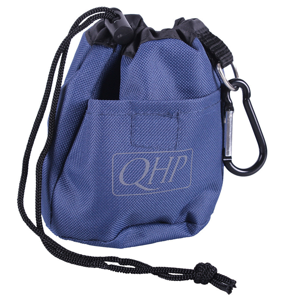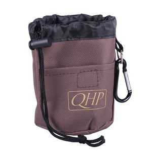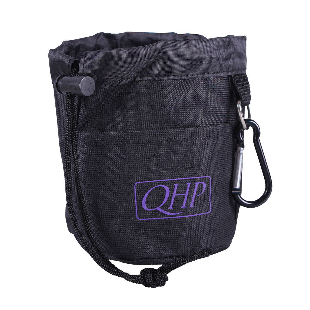 Small bag which can be used to store treats or other edible rewards when doing groundwork. The pocket can be attached in several ways to a belt or pants. It has a loop with D-ring, carabiner hook and two loops on the back.